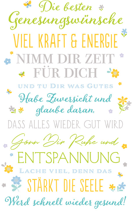 Ein liebevoller Gruss, der Mut macht: Diese stilvolle Genesungskarte der Marke ABC ist der ideale Weg, um jemandem Kraft, Zuversicht und gute Wünsche zu übermitteln.