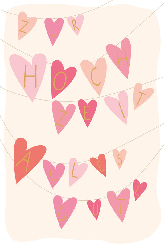 ABC Hochzeitskarte B6 51656 Wäscheleine mit Herzen