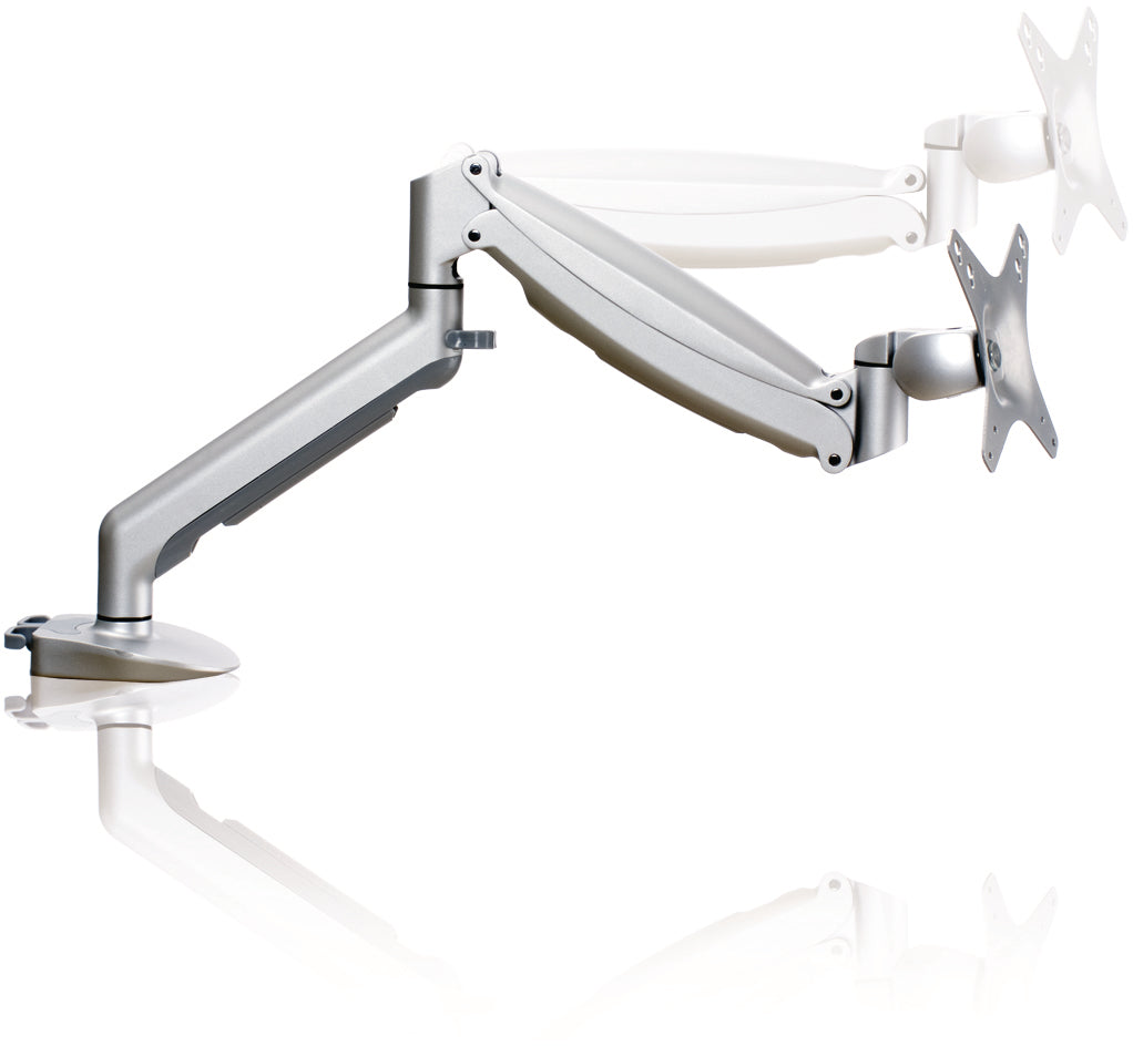 "Der Bildschirmschwenkarm in Silber ist die perfekte Lösung für ergonomisches Arbeiten und eine optimale Bildschirmpositionierung. Mit seinen drei Gelenken ermöglicht er einen beeindruckenden Schwenkbereich von 360 Grad und eine maximale Ausladung von 53 cm. Dieser Schwenkarm kann problemlos Bildschirme mit einer Tragfähigkeit von 3,5 bis 8,5 kg unterstützen.