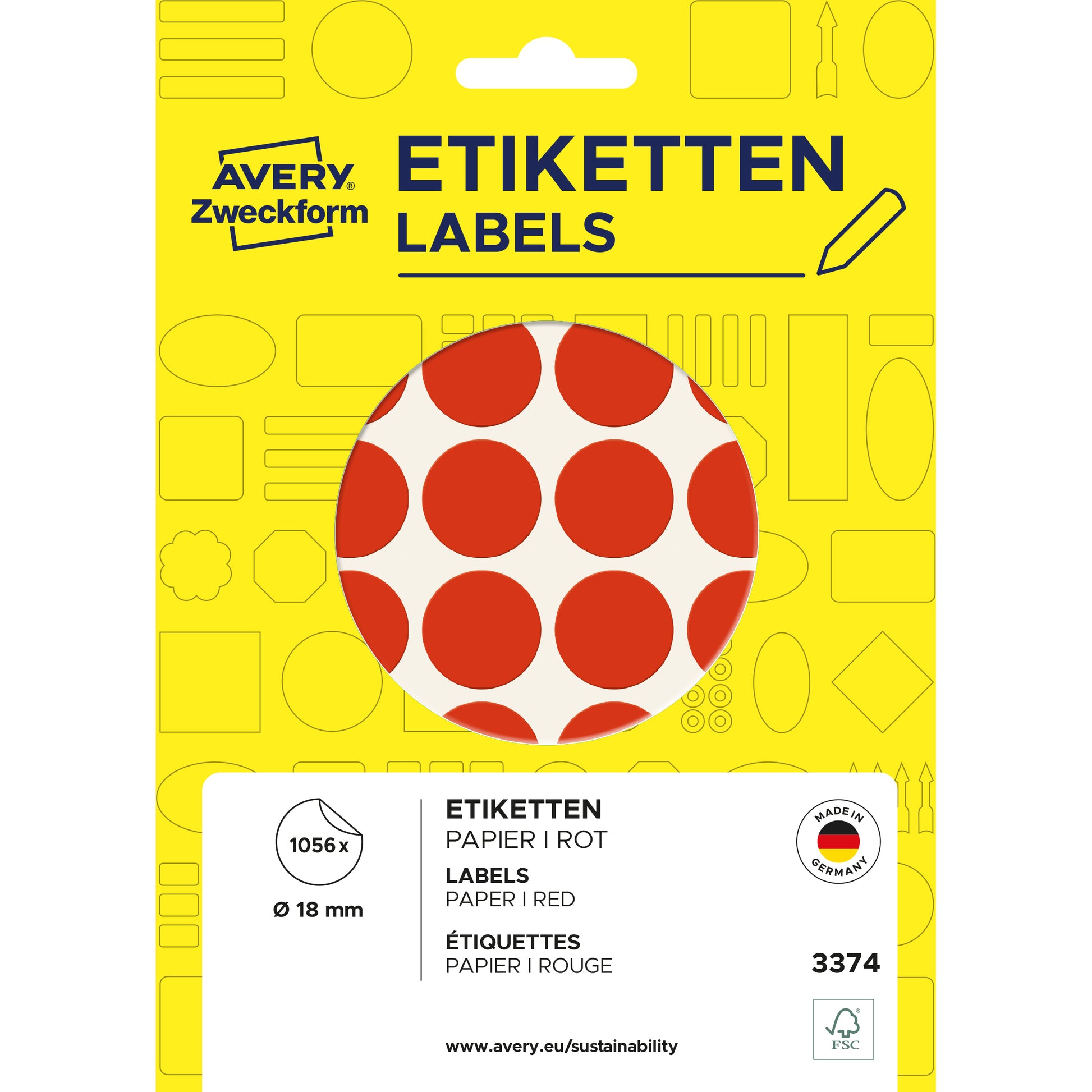 AVERY ZWECKFORM Markierungspunkte 18mm 3374Z rot 1056 Stück