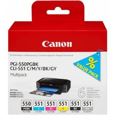 CANON Multipack Tinte PGBK/CMY/BK/GY PGCL550/1 PIXMA MG6350 15/7ml