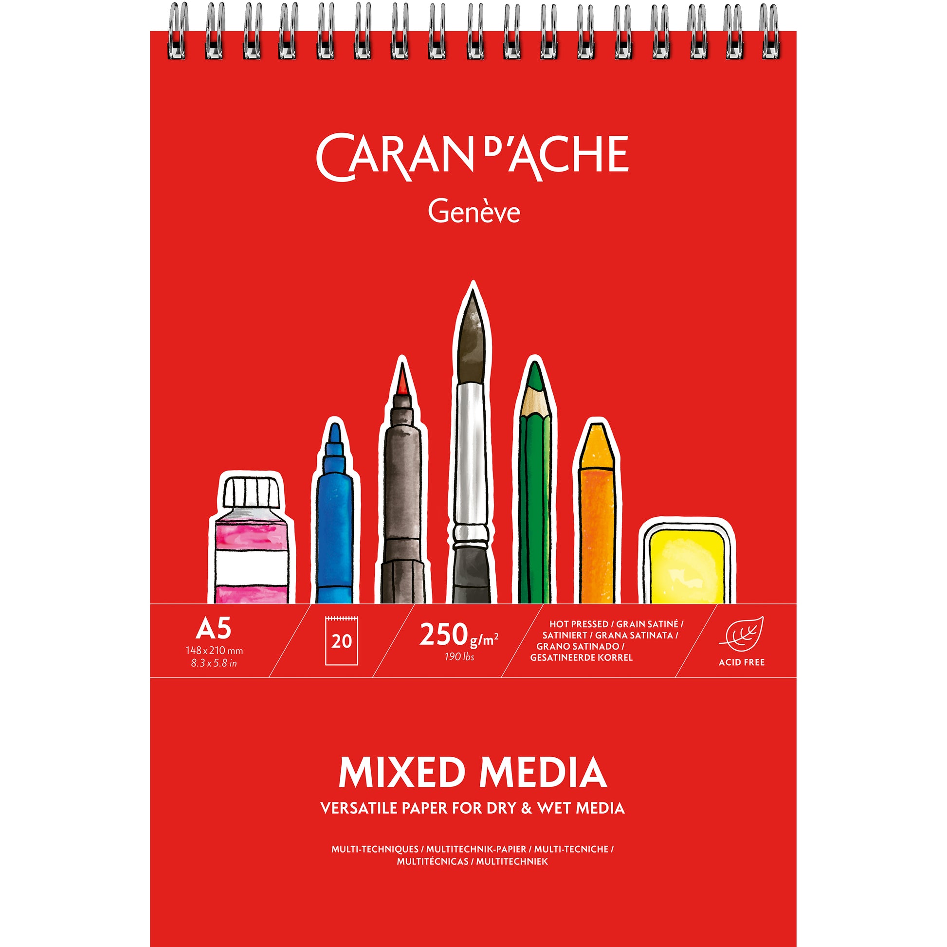 Das vielseitig einsetzbare Papier mit einer Stärke von 250 g/m2 eignet sich für alle kreativen Techniken, egal ob trocken oder nass. Es ist FSC?-zertifiziert und säurefrei. Seine satinierte Maserung eignet sich ideal für alle Caran d'Ache-Materialien und ist das perfekte Werkzeug für alle kreativen Köpfe. Der A5-Spiralblock ist für unterwegs gedacht, perfekt für kreative und künstlerische Hobbys an jedem Ort. Ihrer Kreativität sind keine Grenzen gesetzt. Das Papier kann es mit allen Misch-, Mal- und Zeichentechniken aufnehmen, und die Blätter können sogar herausgetrennt werden !