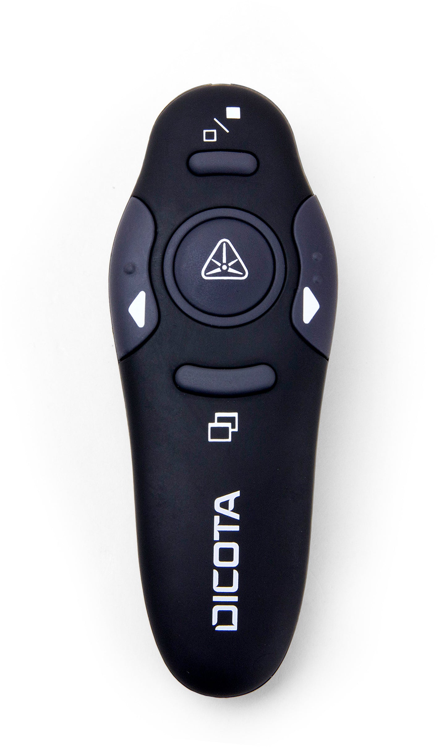 Hinterlassen Sie einen professionellen Eindruck - mit Pin Point von DICOTA führen Sie Ihr Publikum souverän durch jede Präsentation. Dank seiner rutschfesten Oberfläche liegt der ergonomisch geformte Presenter gut in der Hand. Mit einer Funkreichweite von 10 Metern können Sie den Raum optimal nutzen. Konzentrieren Sie sich auf den Inhalt und nicht auf die Technik - die intuitive Tastenführung ermöglicht entspanntes Navigieren. Pin Point überzeugt durch seine einfache Handhabung. Anschliessen und sofort loslegen - der USB Empfänger verbindet sich automatisch mit Ihrem Notebook (keine Installation von Software notwendig).