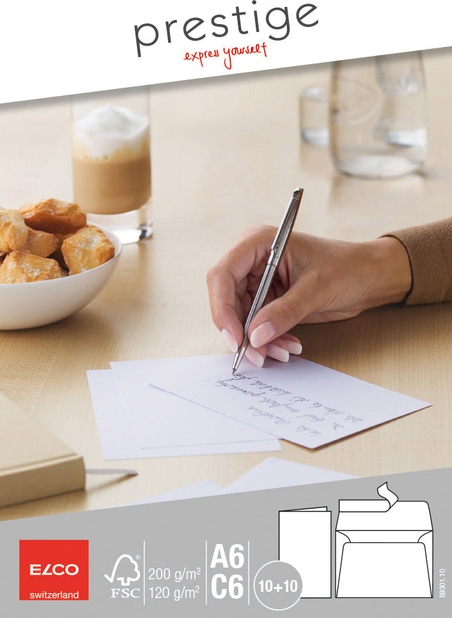ELCO Schreibkarten Prestige A6/C6 89301.10 weiss,m.Couvert,200gm2 10Stk.