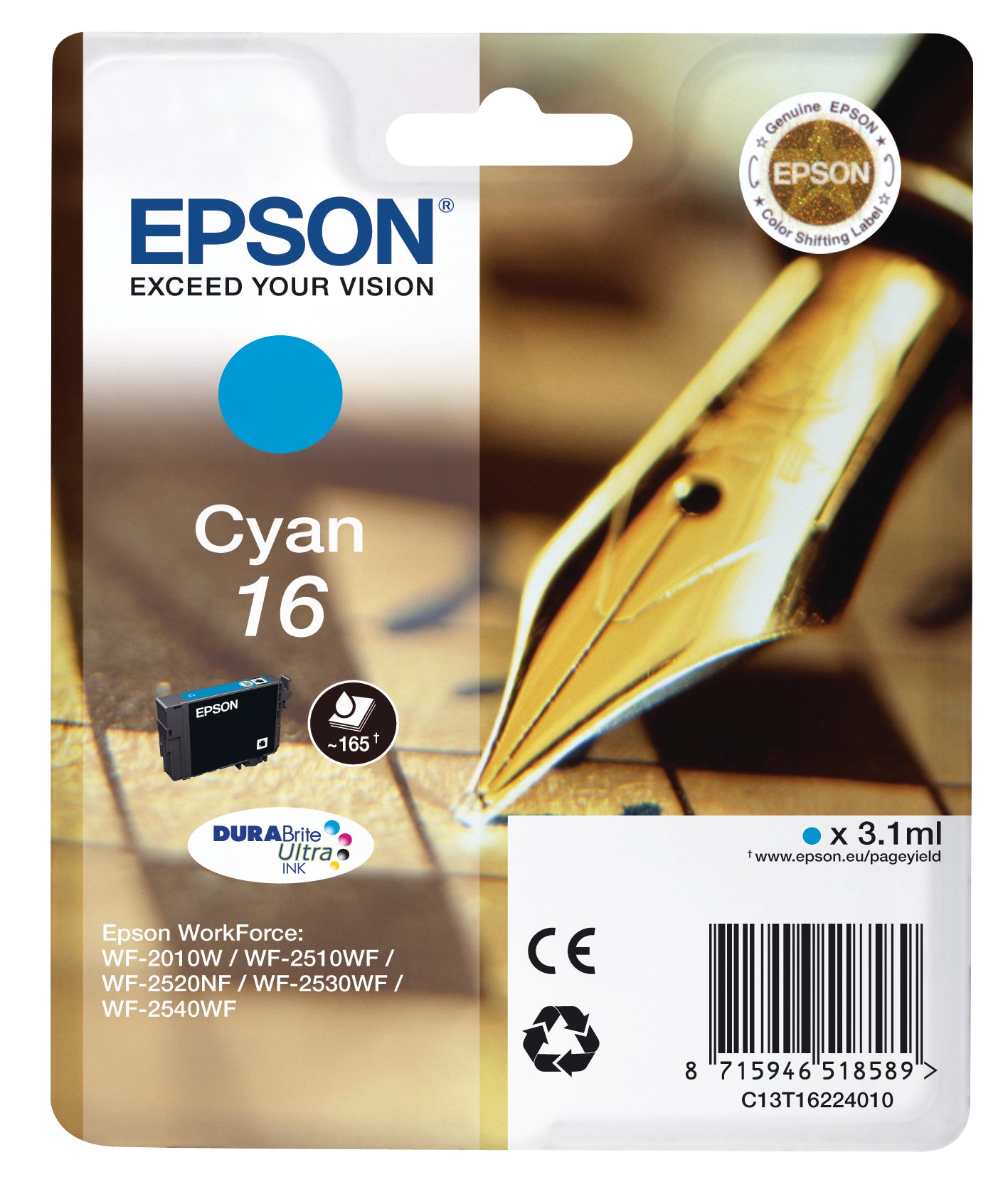 EPSON Tintenpatrone 16 cyan T162240 WF 2010/2540 165 Seiten