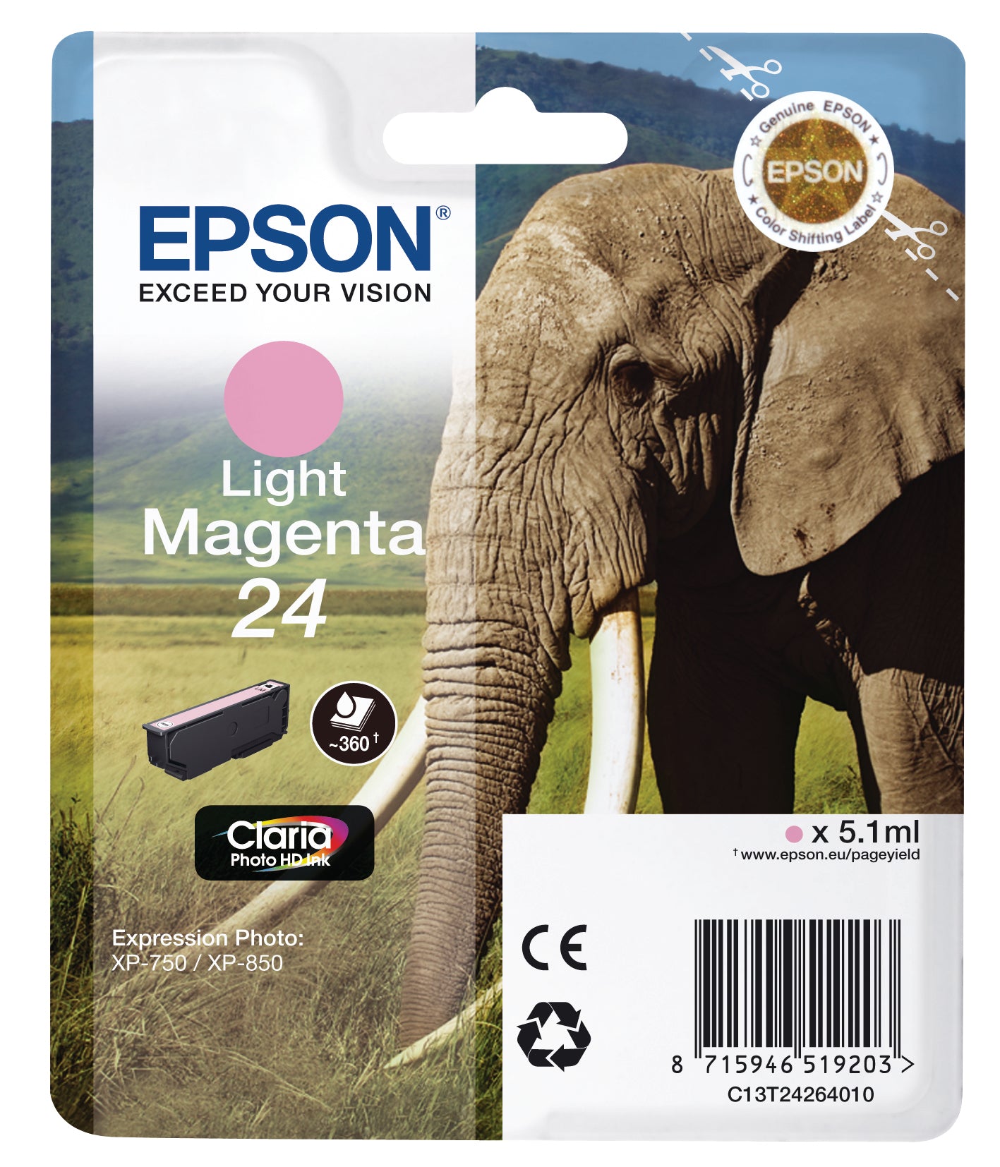 EPSON Tintenpatrone 24 light magenta T242640 XP 750/850 360 Seiten