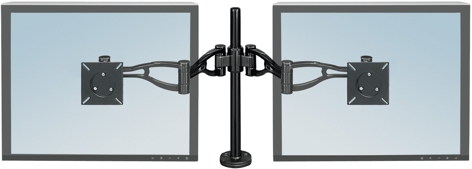 Der Doppel Monitorarm von Fellowes sorgt für optimalen Sichtkomfort. Beide Arme sind in Höhe und Winkel verstellbar. Durch die Klemmhalterung kann der Doppe Monitorarm einfach an einer Tischkante angebracht werden. Er braucht nur minimalen Platz auf Ihrem Schreibtisch, bietet aber maximalen Komfort für die Arbeit mit zwei Monitoren.