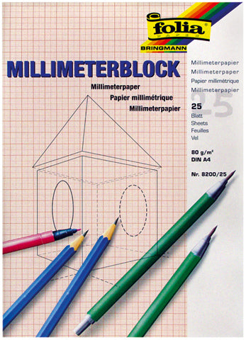 Milimeterpapierblock von Folia, perfekt für exaktes Zeichnen und Schreiben geeignet.