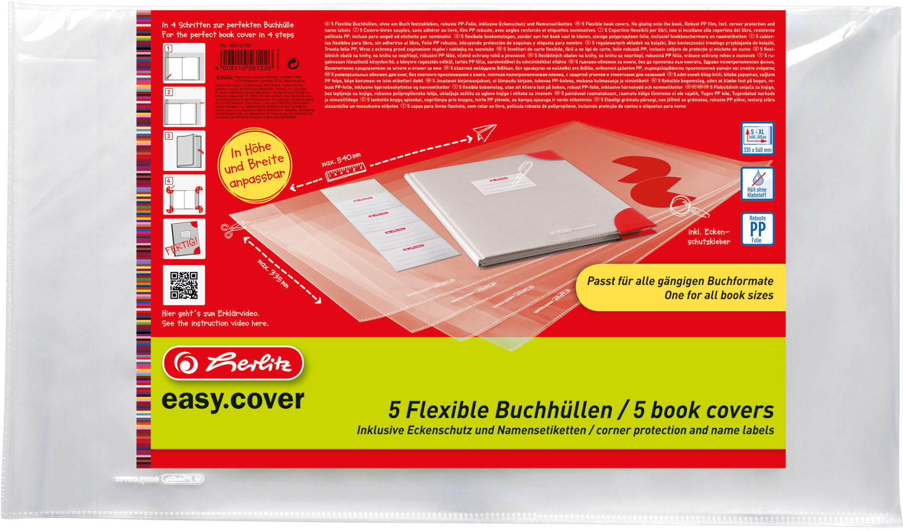 HERLITZ Buchhülle easy cover 50014750 5 Stück in Polybeutel Flexibel