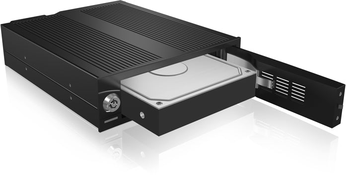 Der Wechselrahmen wird in einen Standard 5,25" Einschub eingebaut und bietet Platz für eine 3,5" SATA HDD. Daten können mit bis zu 6 Gbit/s über einen qualitativen NSS-Connector (No-Scratch-SATA) übertragen werden (SATA I,II, III). Das Gehäuse besteht komplett aus speziellem Aluminium, welches für eine bessere Kühlluftströmung sorgen soll. Der eingebaute Lüfter ist nun gegenüber dem Vorgänger von 3 cm auf 4 cm gewachsen. Damit wird eine bis zu 70% effizientere Lüftung und ein leiserer Betrieb ermöglicht. Die Festplatte kann mithilfe von Hot Swap und Plug & Play zwar komfortabel gewechselt werden, jedoch sorgt ein Schloss dafür, dass Unbefugte keinen Zugriff haben. Eine LED informiert gleichzeitig über Betrieb (Stromzufuhr) und Zugriff (Lese-/Schreibvorgang).