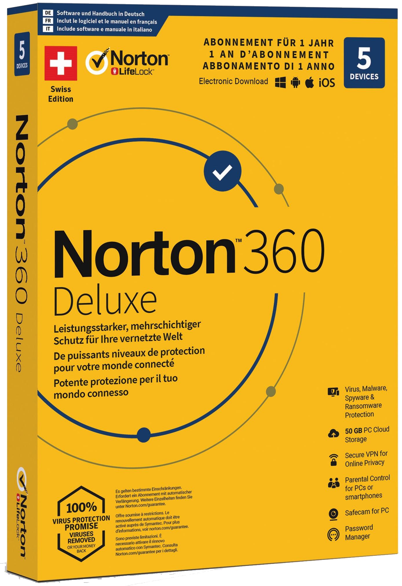 Norton Security Deluxe schützt Ihre Identität und Finanzdaten vor Cyber-Kriminalität. Wenn Sie Ihre Rechnungen auf Ihrem Smartphone bezahlen, auf dem Tablet im Internet einkaufen oder wichtige Finanzdaten auf Ihrem Laptop speichern, erhalten Sie mit Norton Security Deluxe eine unkomplizierte Lösung, mit der Sie bis zu fünf Geräte - PCs, Macs, Smartphones und Tablets - komfortabel schützen können.Schützt Ihre PCs, Macs, Androids und iOS-Mobilgeräte mit nur einem Abonnement ? Schützt Ihre Identität und Ihre Online-Transaktionen ? Warnt Sie mithilfe unserer erstklassigen Technologie vor riskanten Android-Apps, bevor Sie sie herunterladen ? Bestplatzierter Sicherheitsservice für Verbraucher für Ihre verschiedenen Geräte ? Schutz für 1 Jahr