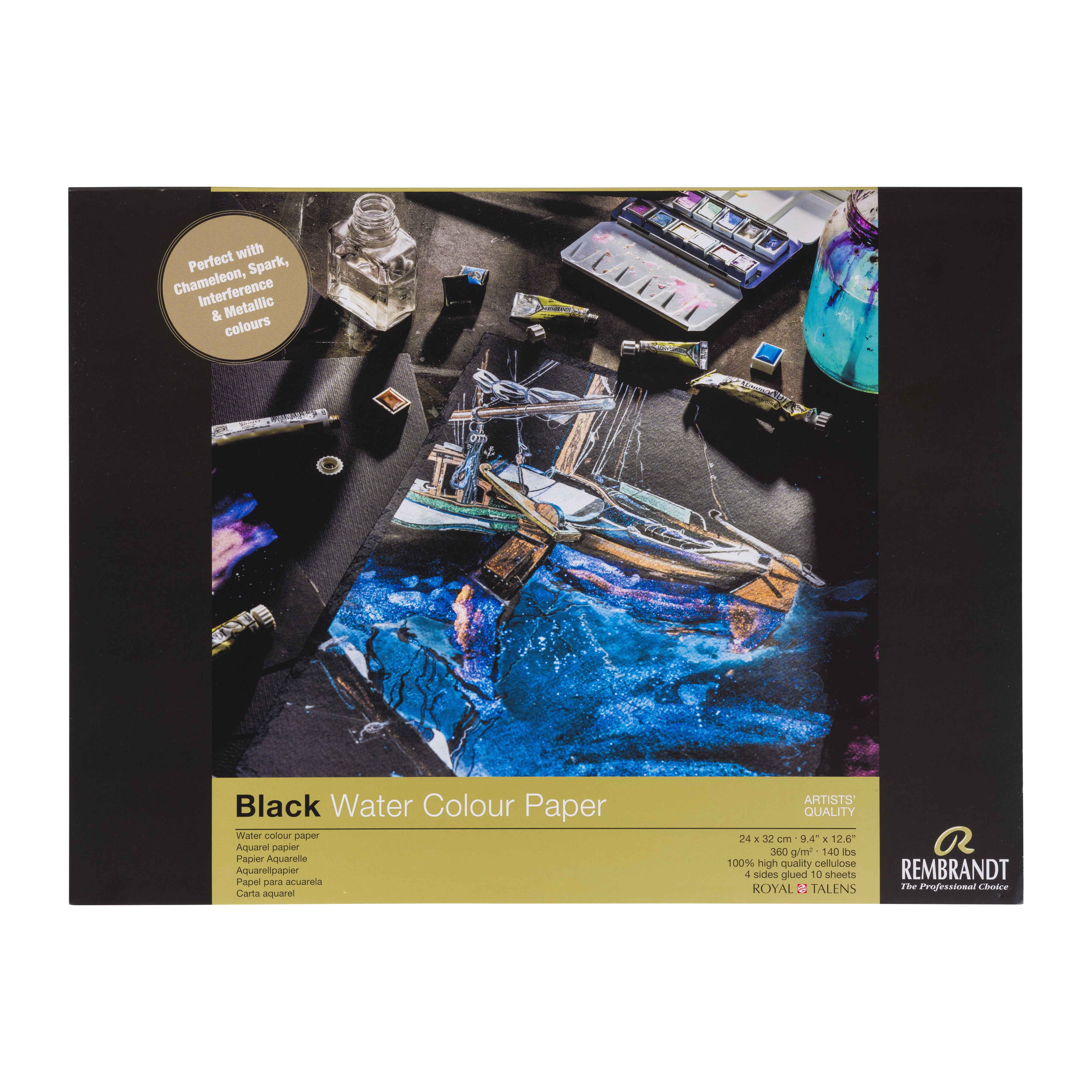 Rembrandt-Papier wurde speziell für professionelle Maler entwickelt. Es ist säurefrei, damit die Arbeit über Jahre hinweg in einem guten Zustand bleibt. Schwarzer Aquarell-Block.