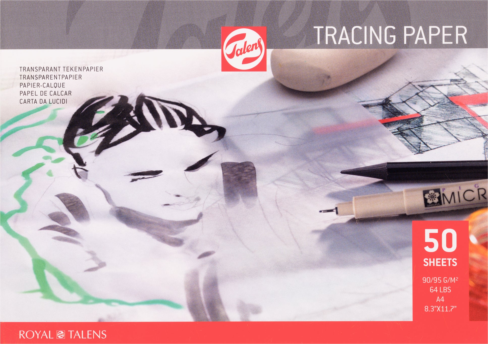 Talens Tracing Papier (Pauspapier/Transparentzeichenpapier) ist qualitativ hochwertig und wurde speziell für Architekten und Designer entwickelt, eignet sich aber auch für viele weitere Anwendungen. Dieser an einer Seite geklebte Block enthält 50 Blatt