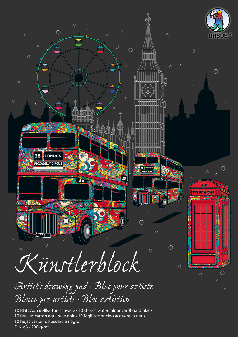 URSUS Künstler-Block, Aquarell A3 16254090SE 290g, schwarz 10 Blatt