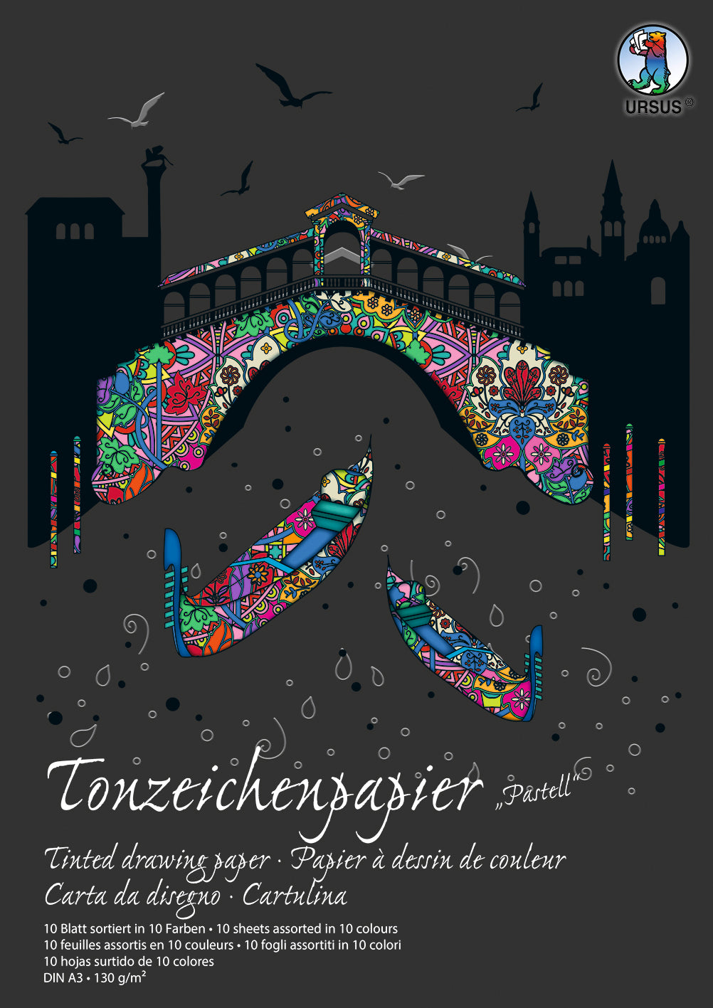 URSUS Tonzeichen-Block A3 2164099SE 130g, pastell 10 Blatt