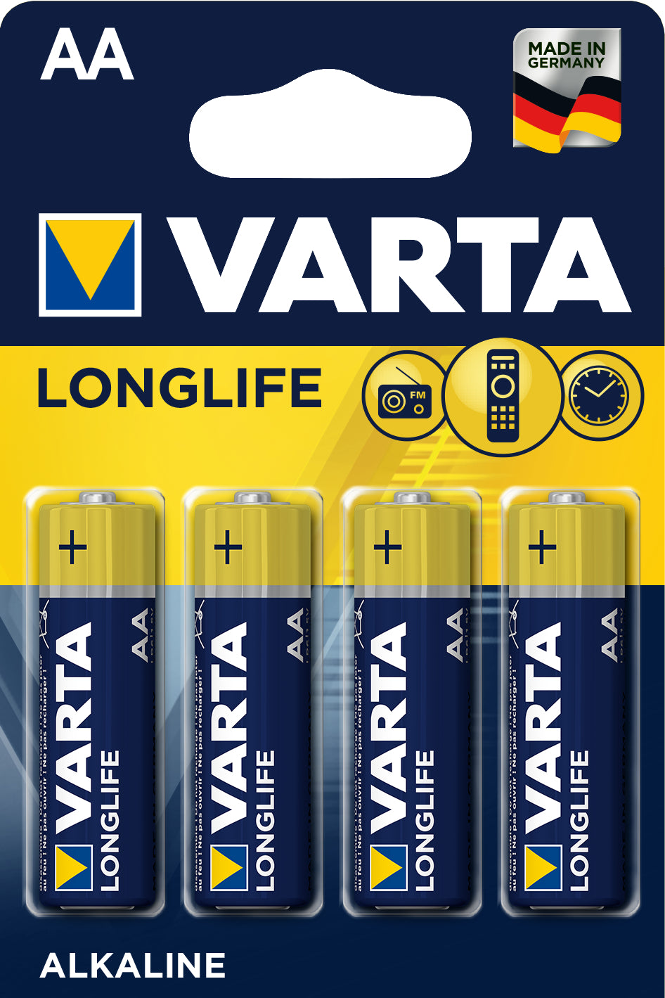 Longlife - Die VARTA für jeden Tag ? für Standardgeräte des täglichen Gebrauchs, wie Fernbedienungen, Wanduhren, Wecker, einfache Taschenlampen u.v.a ? Mehr Ausdauer bei normalem Energiebedarf ? Die richtige Wahl bei Dauerbelastungen im Niedrigstrombereich ? Sie bietet eine lange Haltbarkeit durch die moderne Alkaline-Qualität ? Langanhaltende Energie vorrangig für einfachere Geräten mit konstanten und eher niedrigen Strombedarfen, z.B. Fernbedienungen, Rauchmeldern, Wanduhren, Taschenrechner, elektronischen Waagen
