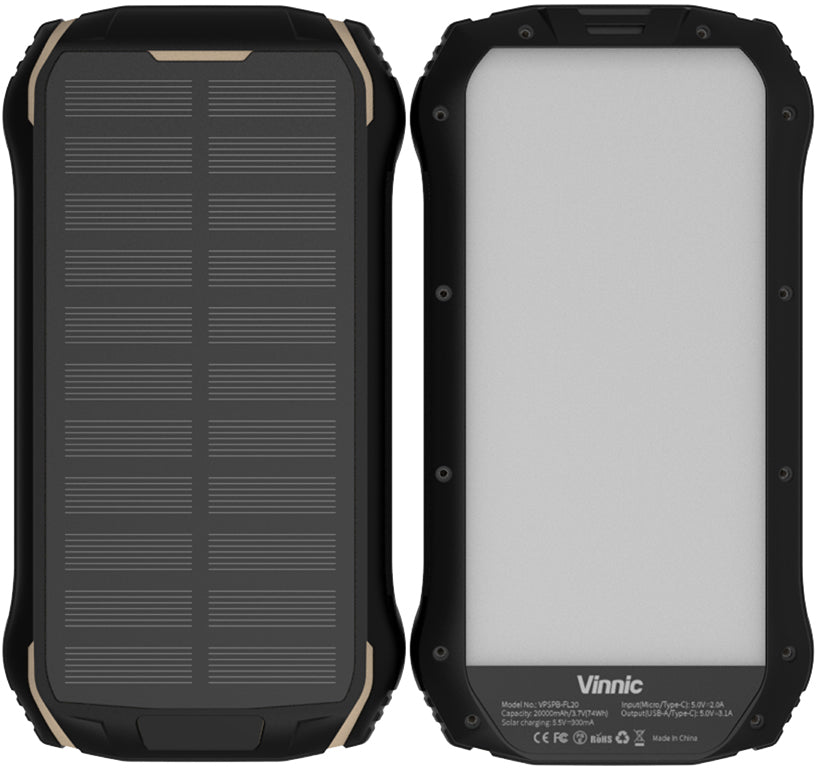 VINNIC Solar Powerbank 20'000 mAh VPSPB-FL20 w/Full LED Panel