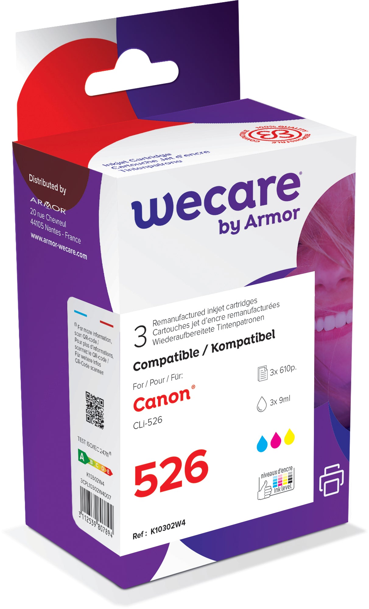 WECARE Multipack rebuilt CMY CLI-526PACKWE zu Canon PIXMA iP 4850 3x9ml