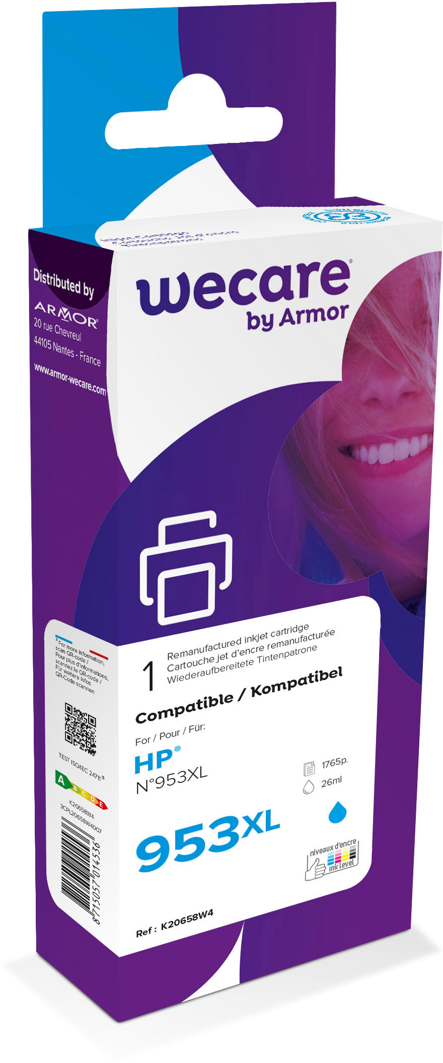 WECARE Tinte 953XL rebuilt cyan F6U16AEWE z.HP OJ Pro 8710 26ml