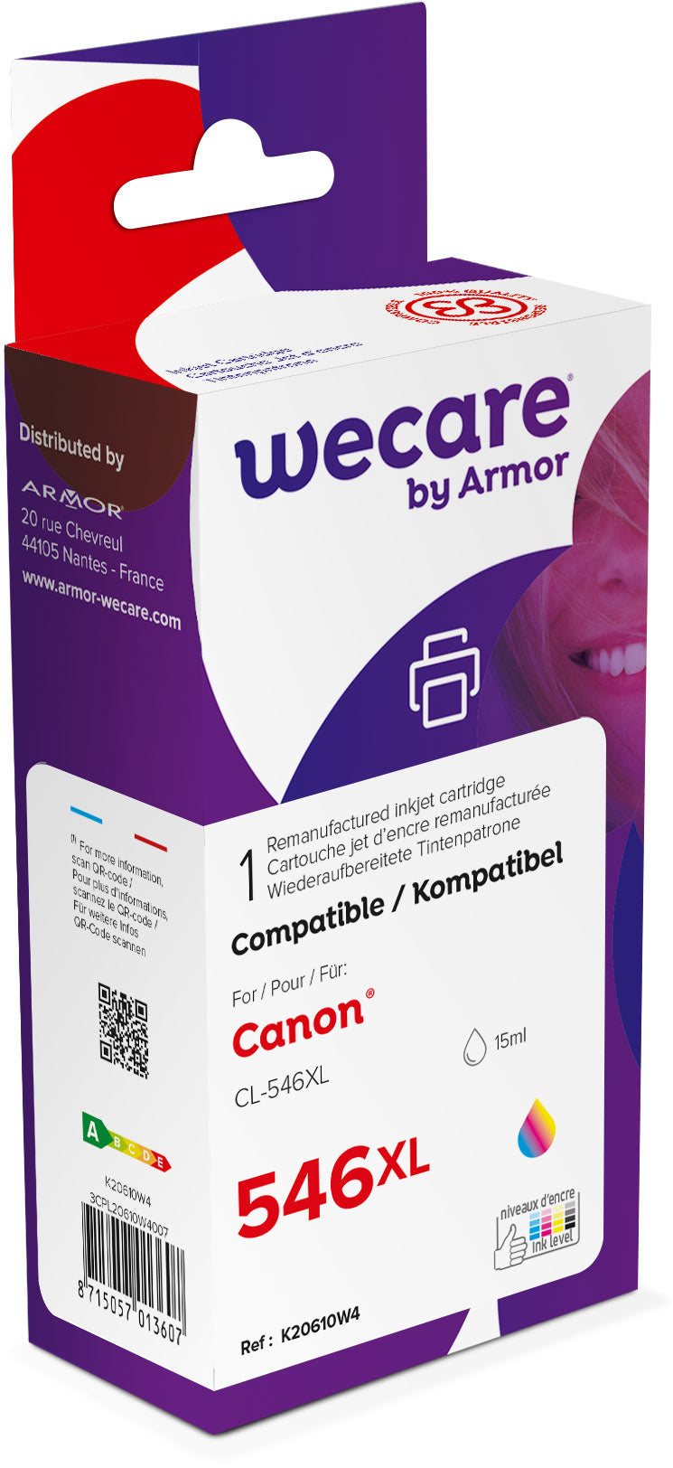 WECARE Tinte XL rebuilt color CL-546XLWE zu Canon PIXMA MG 2450 15ml